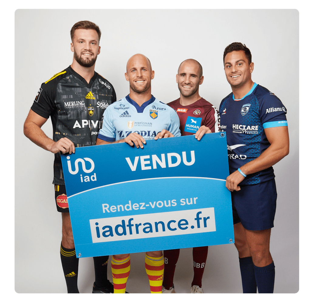 Billboards sur canal+, affichage en bord terrain sur l’ensemble des matchs du TOP 14, activations digitales sur nos réseaux sociaux pour faire gagner des places de matchs tout au long de l’année et faire découvrir l’univers des clubs, mise en place de la Maison du Rugby by iad lors du TOP14 Rugby Tour … autant de moments de partage et de convivialité qui font vivre le partenariat de la meilleure des manières en créant du lien et de la proximité entre les supporters, les fans en devenir et nos conseillers* immobiliers.