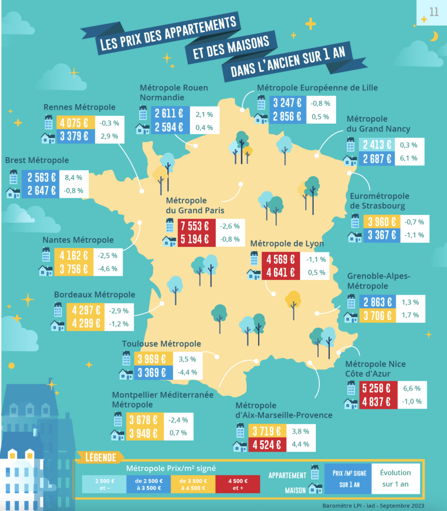 - Les tendances des marchés immobiliers à fin juin 2023 : les prix en France et dans les métropoles