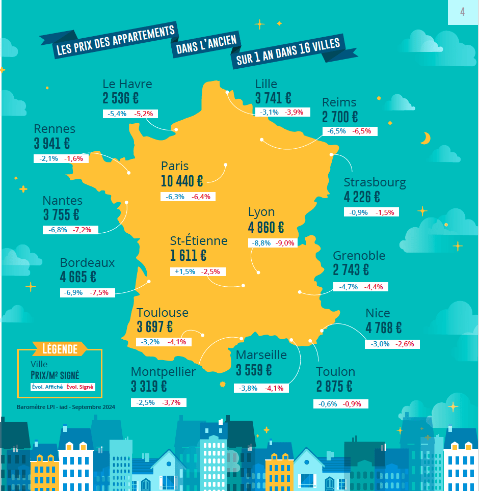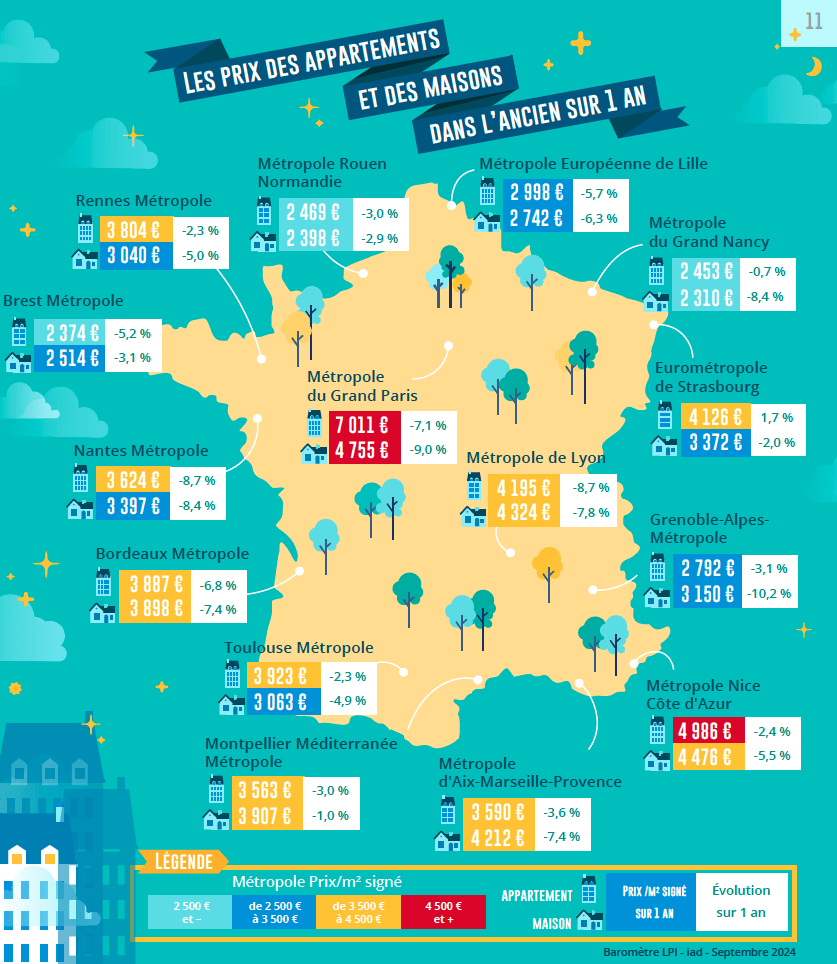 - Les tendances des marchés immobiliers à fin juin 2024 : les prix en France et dans les métropoles