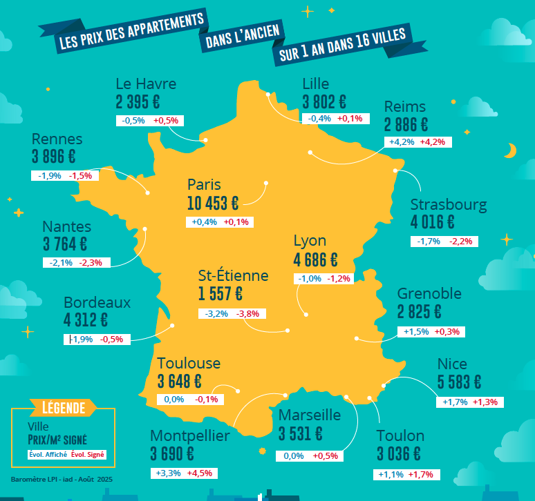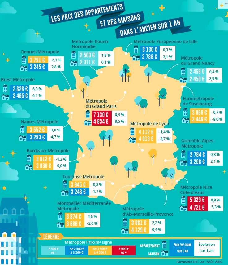 - Les tendances des marchés immobiliers à fin juillet 2025 : les prix en France et dans les métropoles
