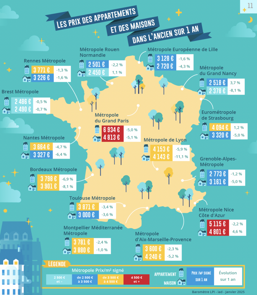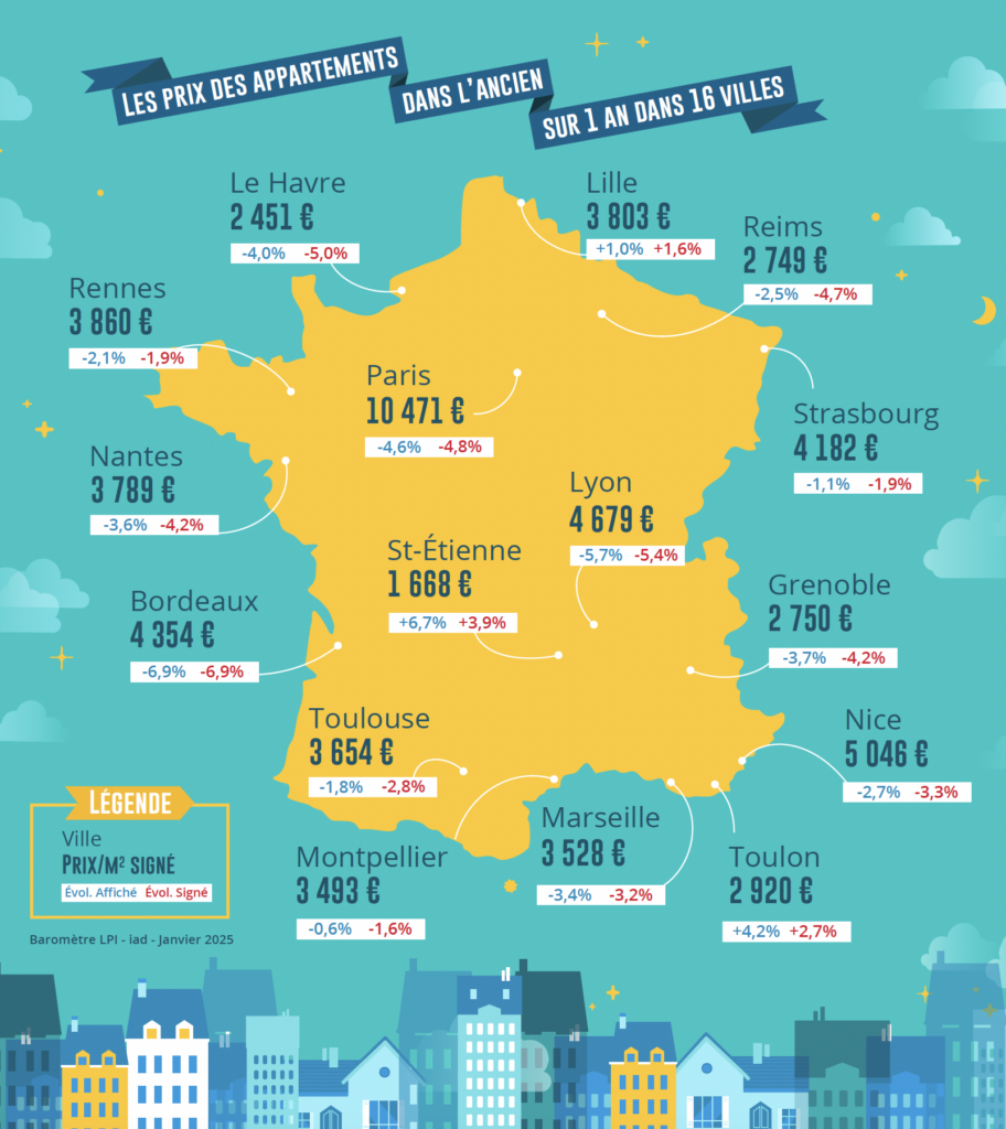 Et ailleurs, le rythme de la baisse des prix des appartements ralentit assez rapidement, comme à Grenoble, à Lille ou à Rennes.