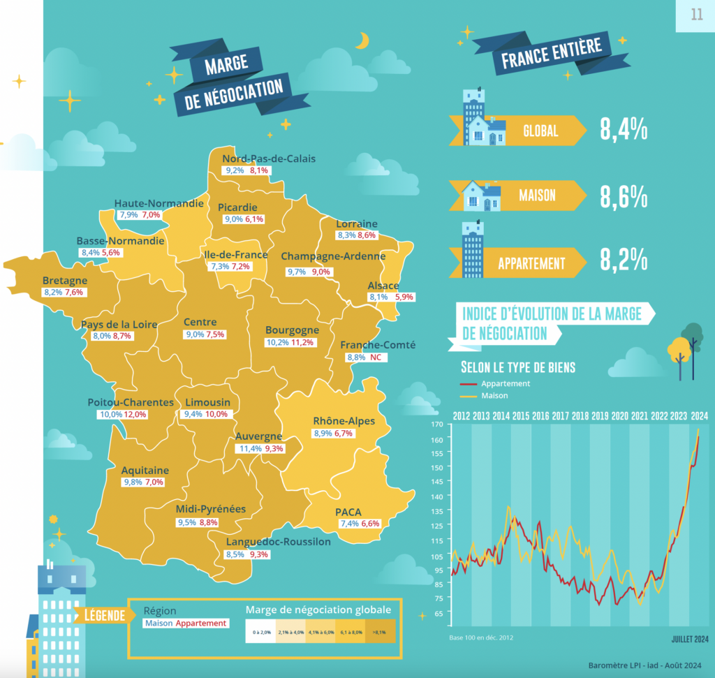 Les tendances des marchés immobiliers à fin juillet 2024 : évolution des transactions et des marges de négociations en France