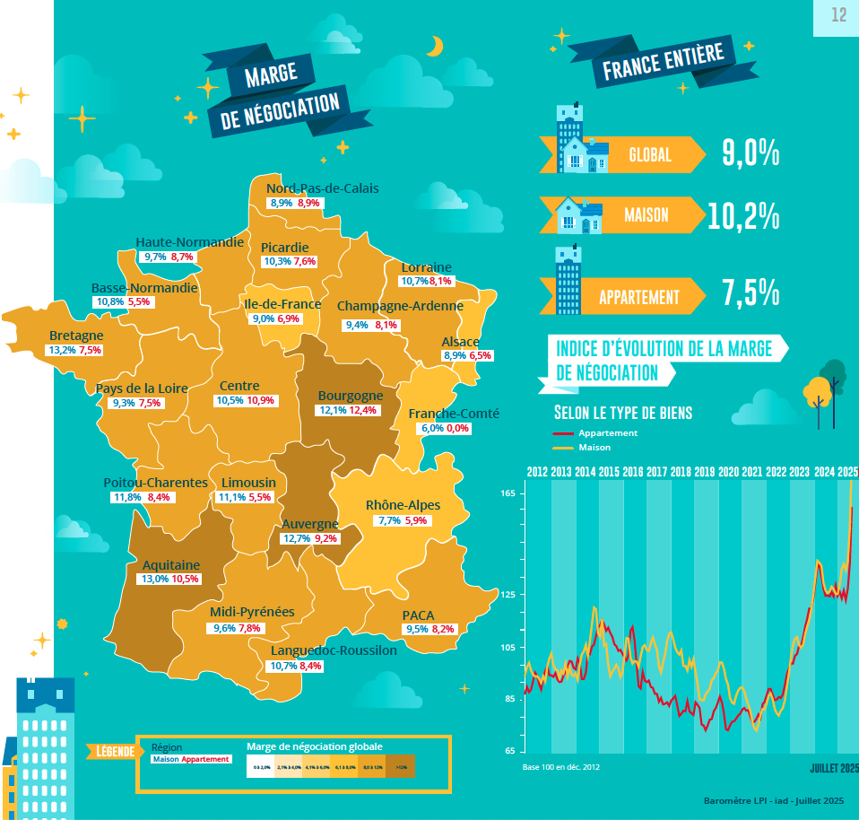 Les tendances des marchés immobiliers à fin juillet 2025 : évolution des transactions et des marges de négociations en France