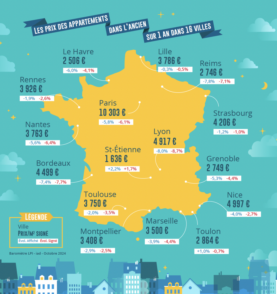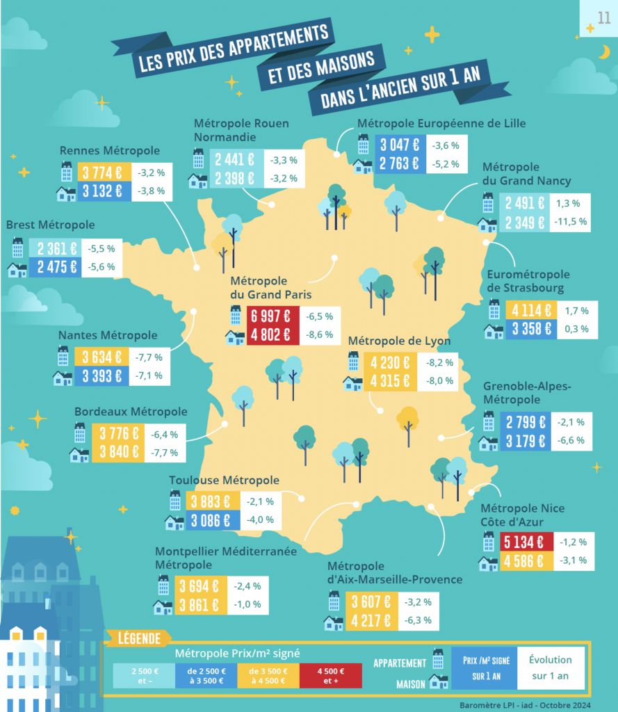 - Les tendances des marchés immobiliers à fin août 2024 : les prix en France et dans les métropoles
