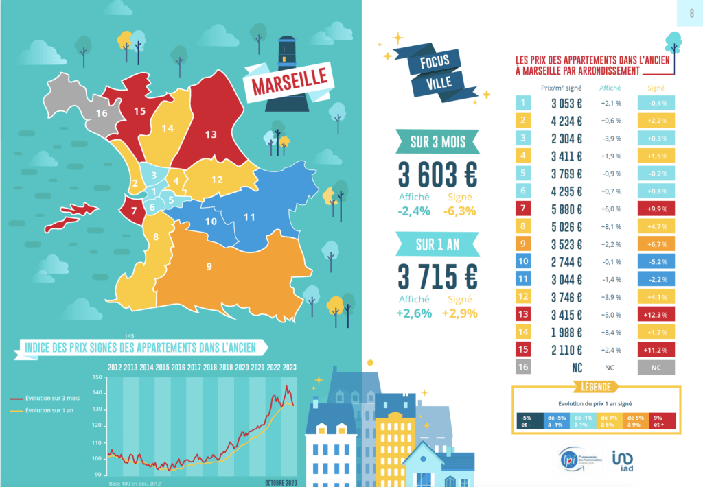 À Marseille, les prix s’établissent à 3 603€/m², reflétant la complexité du marché local (+4%).